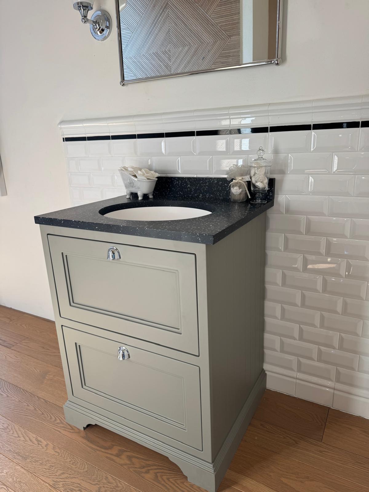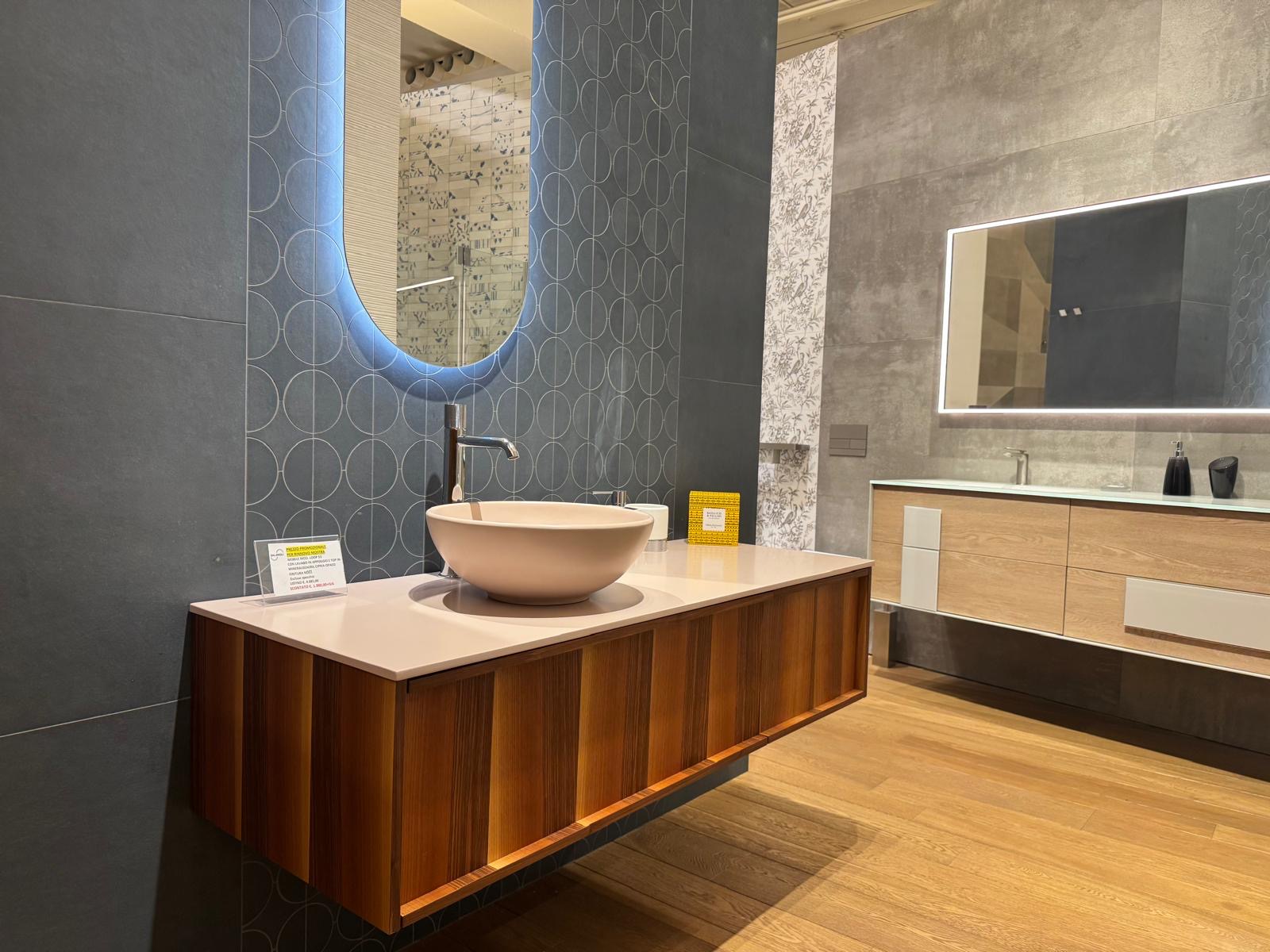 Mobile bagno modello Loop con lavabo in appoggio bianco opaco
