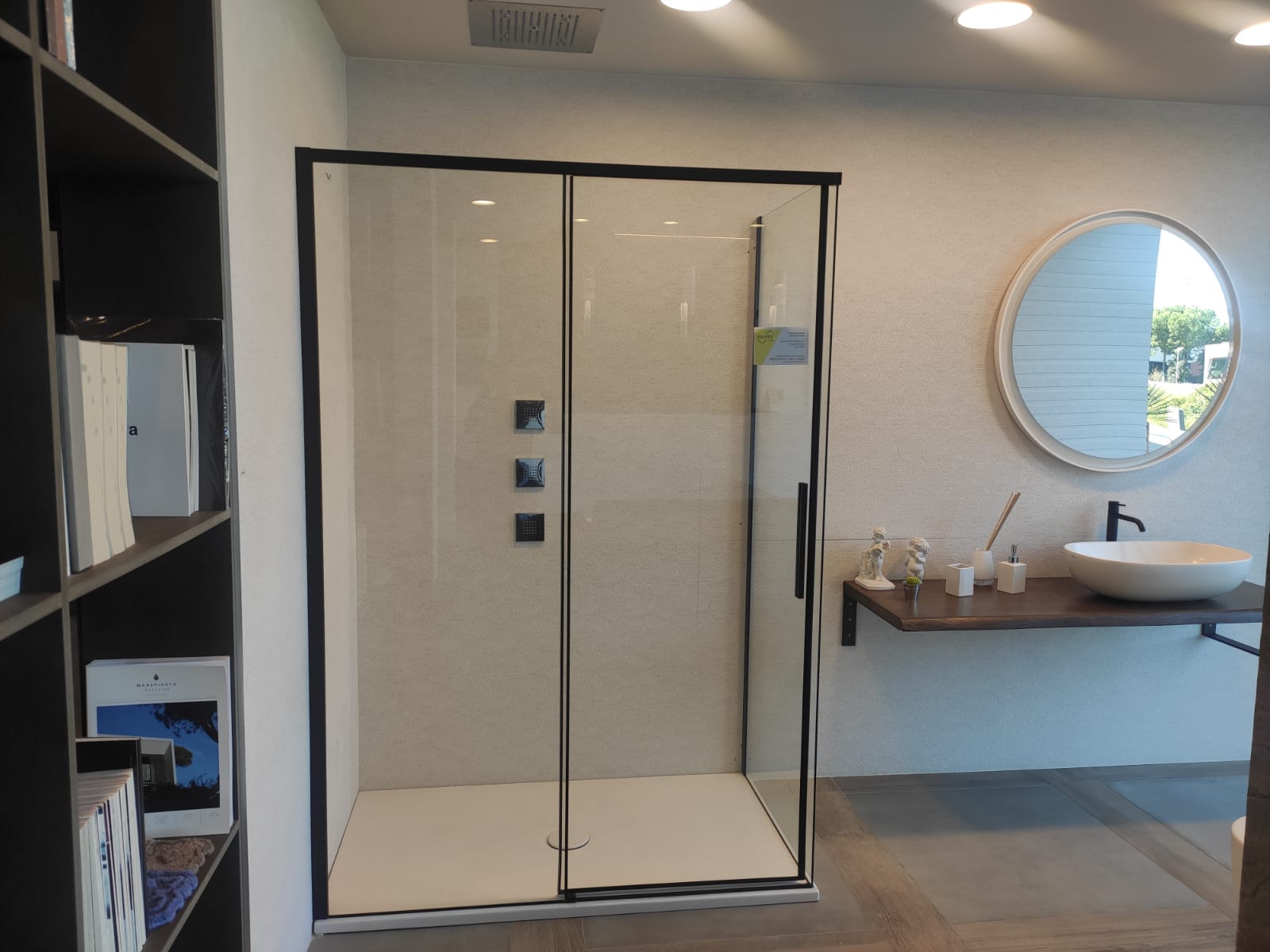 Box doccia ad angolo con porta scorrevole finitura carbon