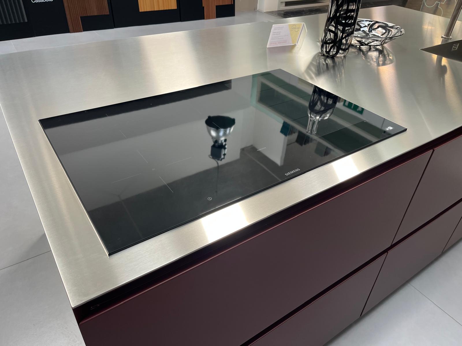 Inclusi elettrodomestici, ante laccate e piano in acciaio